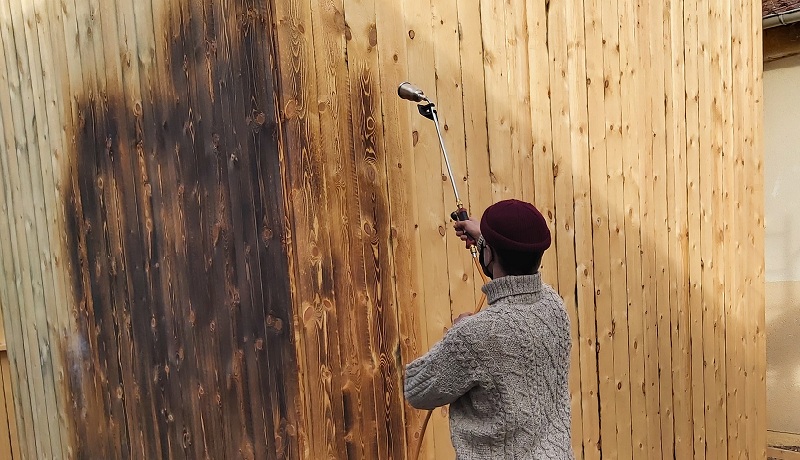 > Réalisation d'une meule de charbonnier par l'artiste pour la fabrication du charbon de bois nécessaire à son installation ICI