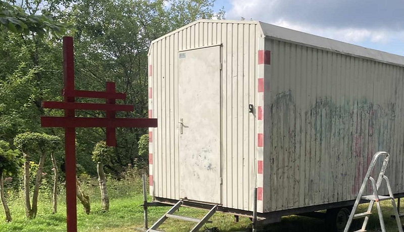 Cette ancienne roulotte de chantier est donc en cours d'aménagement afin de permettre à l'artiste de disposer "sous un même toit" de tous les instruments nécessaires pour poursuivre ses actions-réparations mais également pour lui permettre d'ouvrir son univers au plus grand nombre lorsque le Cabinet s'arrêtera dans nos villes et villages.